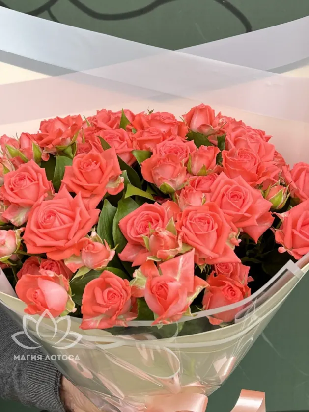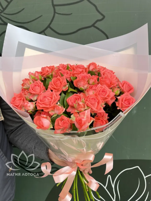 - кустовая розовая роза 7 шт.