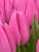 на фото представлен букет с тюльпаном сорта Триумф. Цветы бокаловидной формы, насыщенного розово цвета и прочным стеблем.